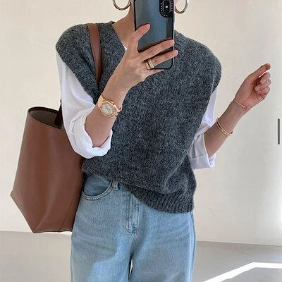 ニットベスト レディース ベスト Vネック ニット ベスト トップス 春 秋 冬 プルオーバー ノースリーブ 大きいサイズ 秋ベスト レイヤード 重ね着 ゆったり オフィス OL 通勤 カジュアル 大