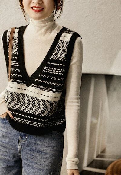ニットベスト レディース ベスト Vネック ベスト トップス 春 秋 冬 総柄 ベスト プルオーバー ノースリーブ 大きいサイズ 秋ベスト レイヤード 重ね着 ゆったり オフィス OL 通勤 カジュ
