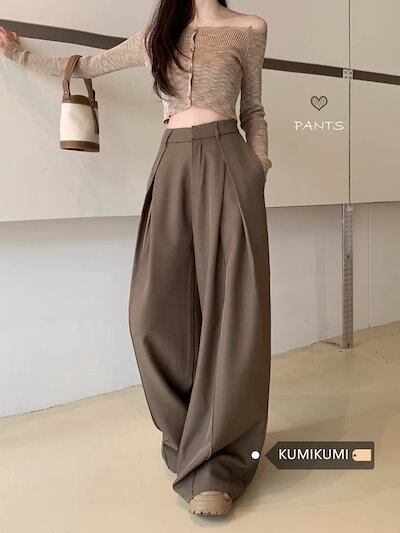2025春夏 スタイルアップ効果up モップパンツ脚長ズボン美脚 ハイウエストレディース 韓国 レッグカジュアル スリムボトムス ファッション色っぽ女っぽカジュアルきれいめ大人っぽ上品お姉さんゆったり