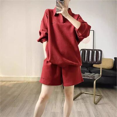 【2枚購入で 2oo円OFF!】2025新作 シンプル スウエット 春夏薄手セットアップ レディース レディースファッション Tシャツ トップス ワイドパンツ 二点セット百掛け 大きめサイズ 着痩せ