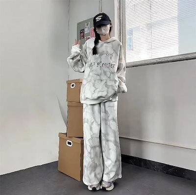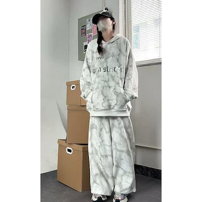 2024 秋冬 韓国 かわいいプルオーバー? レディース パーカー長袖アウターレトロセット_白 ブルサイズ丈トップス春カジュアルスポーツファッション系通学学生袖お出かけアップシルエットトラック羽織り