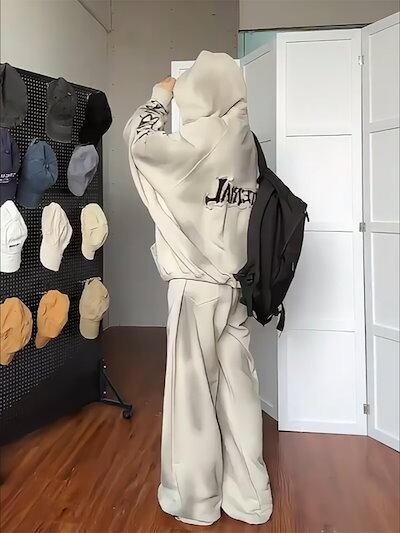 2024 秋冬 韓国 かわいい レディース 無地 フード付き長袖アウターレトロセット_白フーディーブルサイズ丈トップス春カジュアルスポーツファッション系通学学生袖お出かけアップシルエットトラック羽織り