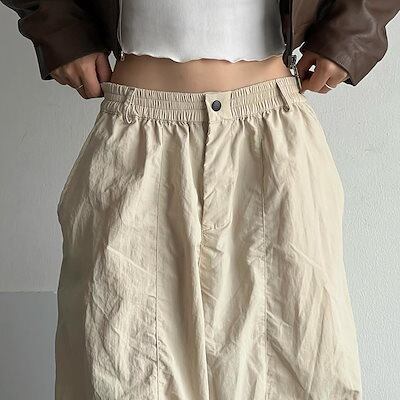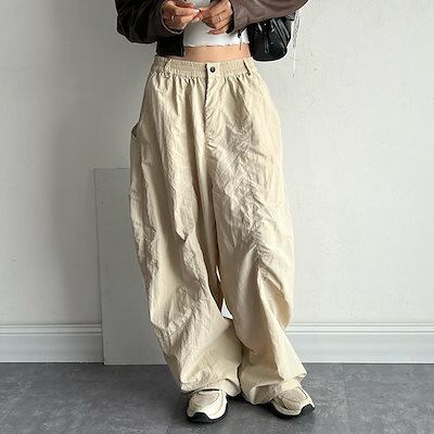 2025春夏 ウエストゴム ハイウエストカーゴパンツ ボトムスワイドパンツベイカーパンツストレートゆったりルーズ 韓国カジュアルスポーティーメンズライクレディースファッショントラック