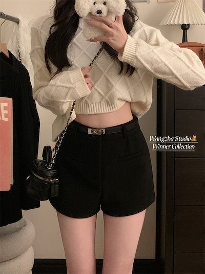 2025 春夏パンツ ショート丈 ワイド ウエストゴム ハイウエスト 美脚効果 脚長効果 細見え 短パン 白 おしゃれ かわいい 韓国ファッション系 レディース お出かけ