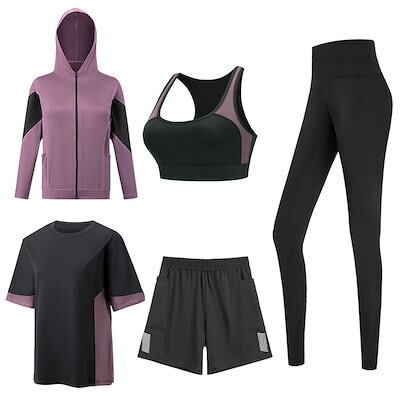 【5点セット】2025新作 ヨガウェア上下セット レディース ラージサイズフィットネス春夏スポーツジムフィットネスウェア 速乾 運動ズボン ジャージ ヨガパンツ ダイエットウェア
