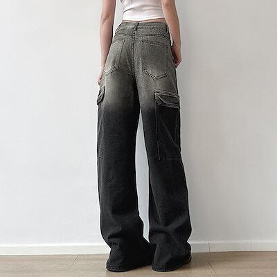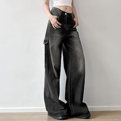 2025春夏 デニムパンツ ボトムス ハイウエスト ジーンズ K-POP ファッション系韓国風スタイル ゆるダボウェア練習ジーンズ シルエット加工ゆったり レディースカジュアル型春夏メンズライク衣装