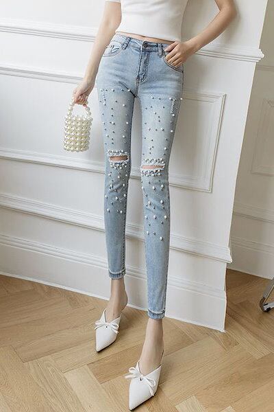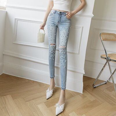 人気スラックスパンツ 2025 春 新しいスタイル ジーンズ レディース スキニーペン シャープで細い