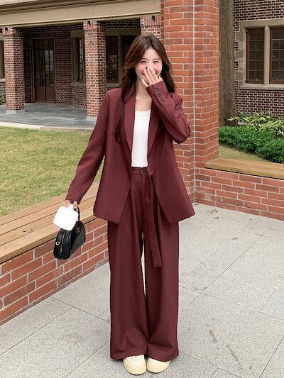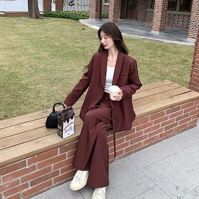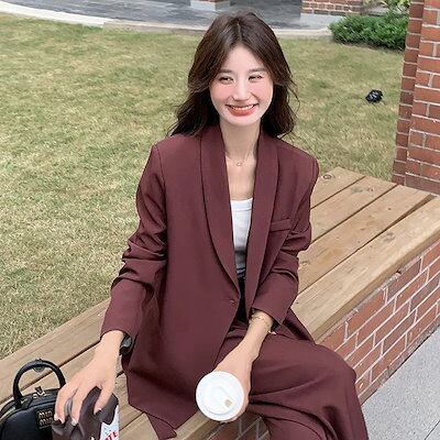 スーツセットアップ 卒業式?入学式 レッド レディース 2025春新作 気質 デザインセンス ジャケット ワイドパンツ 2点セット 新生活応援ビジネス特集