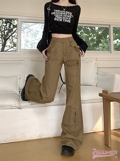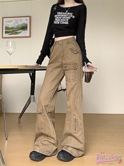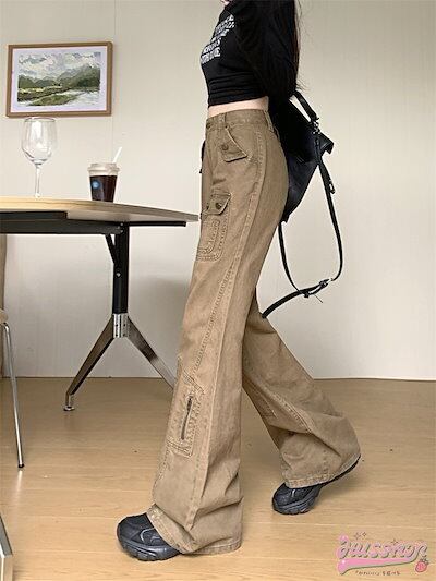 パンツ デニム ジーンズ ワイドレッグ ワイド ハイウエスト 脚長効果 美脚効果 細見え 春 茶色 ブラウン カジュアル 韓国ファッション レディース お出かけ