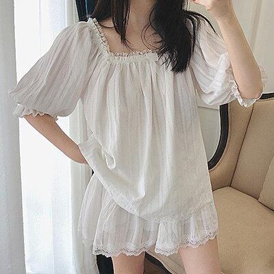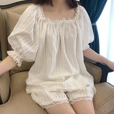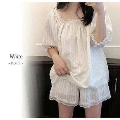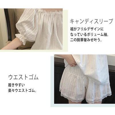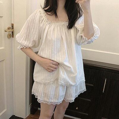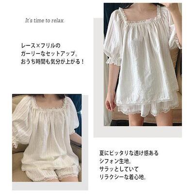 ルームウェア レディース 春夏 上下セット 半袖 トップス 短パン ショートパンツ レース フリル 可愛い