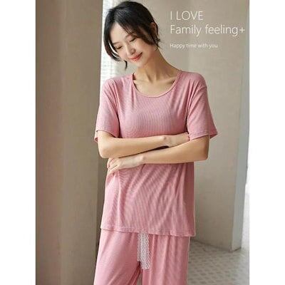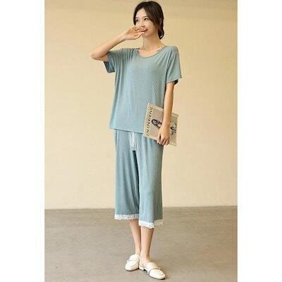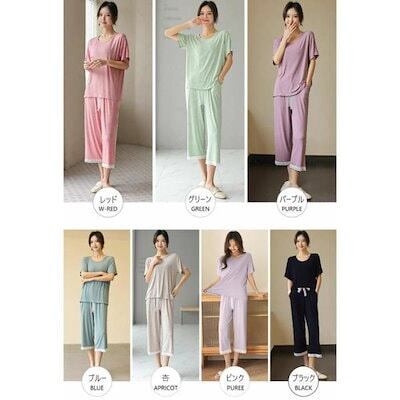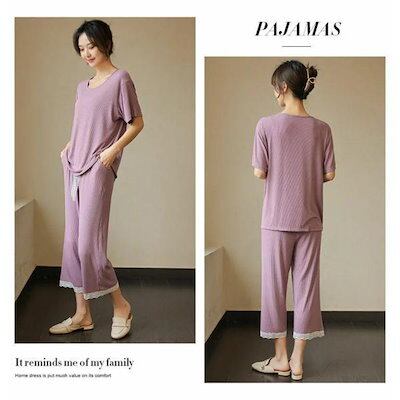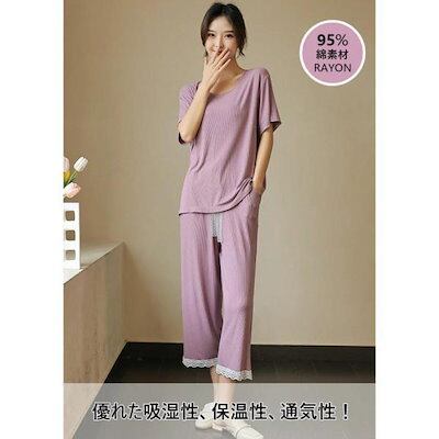 ルームウェア レディース 上下セット パジャマ半袖tシャツ 長ズボン ワイドパンツ 春夏 パジャマ カットソー パステルカラー かわいい おしゃれ ゆった