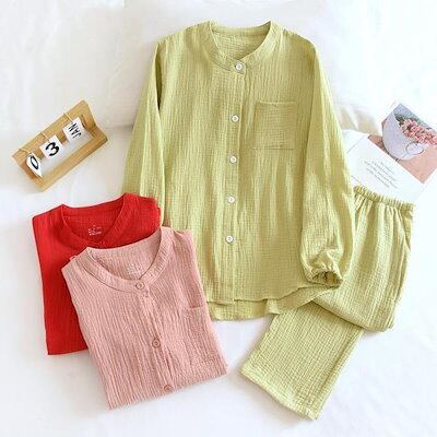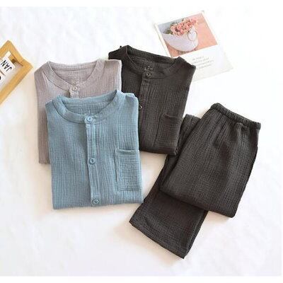 ダブルガーゼ ルームウェア ガーゼ パジャマ 綿100% 上下セット 部屋着 ペアパジャマ 長袖 長パンツ レディース メンズ カップル 春 秋 冬 肌触り良い 柔らかい