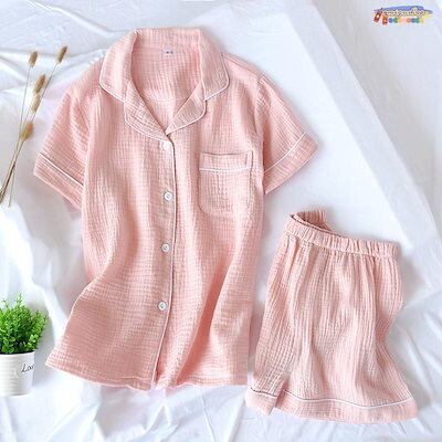 パジャマ 綿100% レディース ルームウェア ダブルガーゼ 上下セット 半袖 シャツ ショートパンツ 部屋着 寝間着 吸汗 通気 肌に優しい 春夏秋