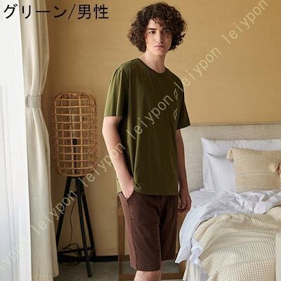 カップル ルームウェアセット 春夏秋 パジャマ メンズ レディース ネグリジェ ワンピース 綿 通気性 柔らかい 男性 半袖 Tシャツ ショートパンツ 寝巻き 家着
