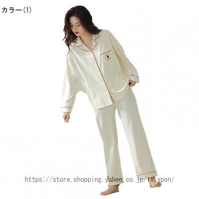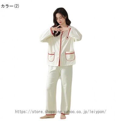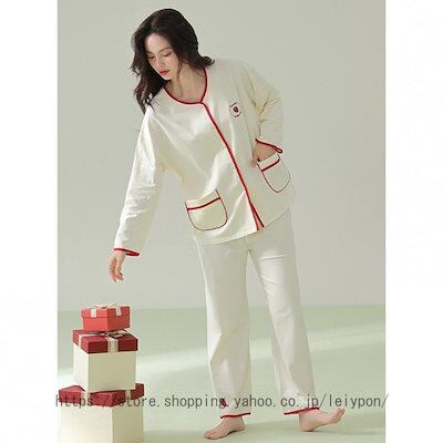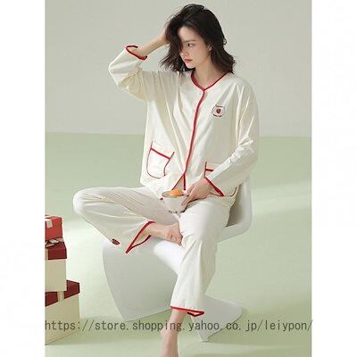 ルームウェア レディース セットアップ 上下セット 可愛い パジャマ 長袖 パンツ ボ 前開き あったか 秋 冬 春 夏 軽い 綿 大きいサイズ 大人可愛い