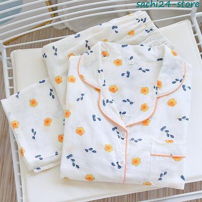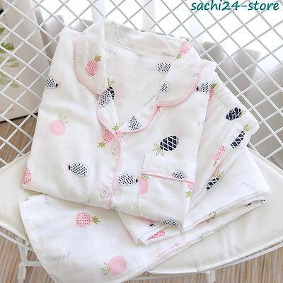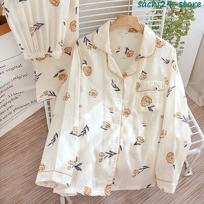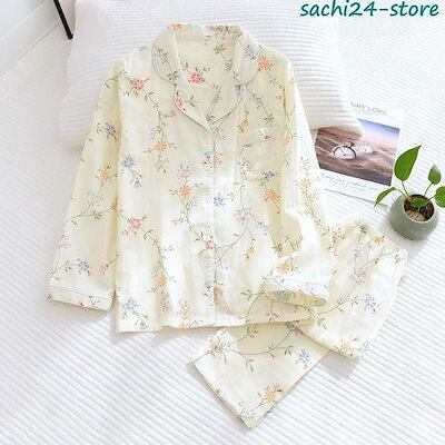 パジャマ ルームウェア レディース ダブルガーゼ 長袖 前開き シャツ ロングパンツ 上下セット 春 夏 秋 部屋着 寝巻き 花柄 入院 マタニティ