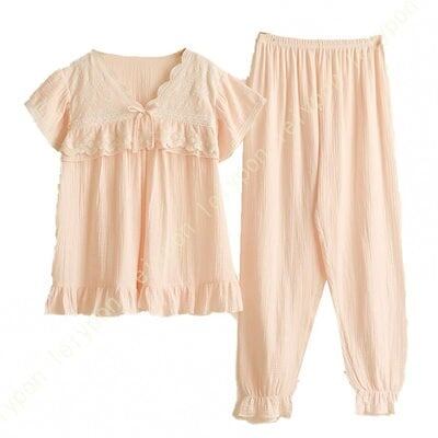 パジャマ レディース 綿100% 半袖 ルームウェア 上下セット 可愛い フリル ロングパンツ ズボン リボン 春 夏 夏用 涼しい 女性 ジュニア コットン 部屋着