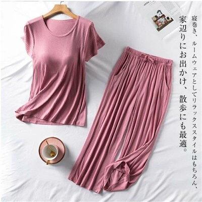 パジャマ ルームウェア レディース 春夏 半袖 柔らかい 2点セット 大きいサイズ パンツ 上下セット カップ付 tシャツ 可愛い 女性 部屋着 寝間着 韓国風