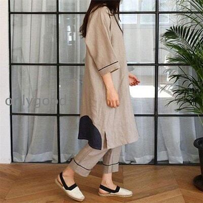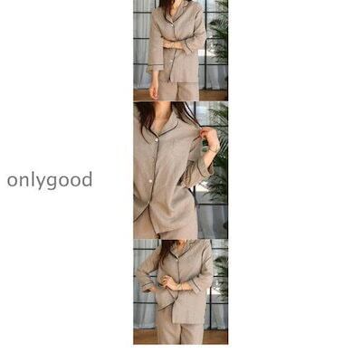パジャマ 綿麻 前開き レディース 2タイプ選べる 入院 妊婦 産後 ダブルガーゼ 春 夏向き ルームウェア パンツ 2点セット サックス M L LL おそろい ペア 夫婦