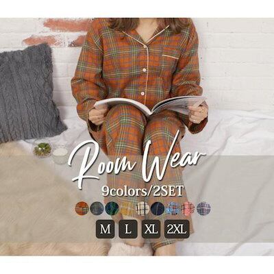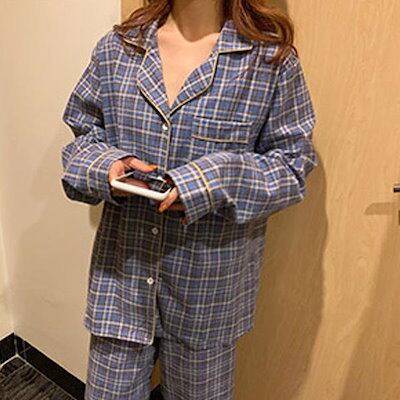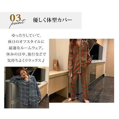ルームウェア パジャマ レディース 秋 冬 春 トップス パンツ 上下セット トータルコーデ 中厚手 長袖 長ズボン 可愛い お洒落 チェック柄 部屋着