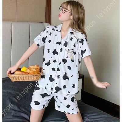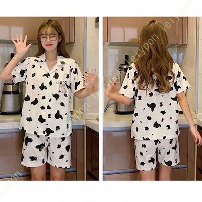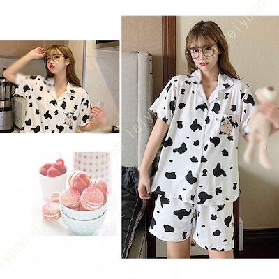 パジャマ レディース 夏 半袖 綿 上下セット ルームウェア 牛柄 ゆったり ホームウェア 上下セット かわいい Tシャツ 半袖 ショートパンツ 春夏