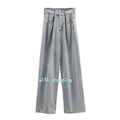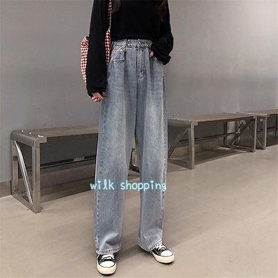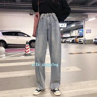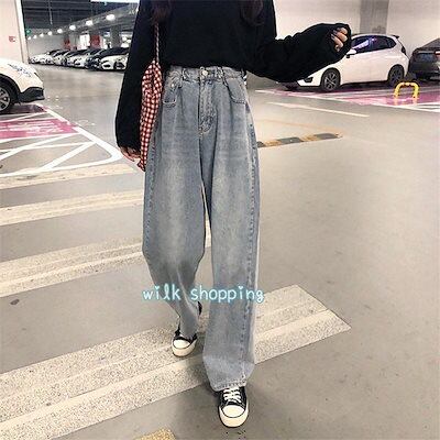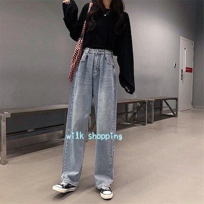 デニムパンツ レディース ハイウエスト ワイドパンツ ゆったり 脚長効果 ジーンズ 韓国ファッション カジュアル 細身美脚 長ズボン お出かけ
