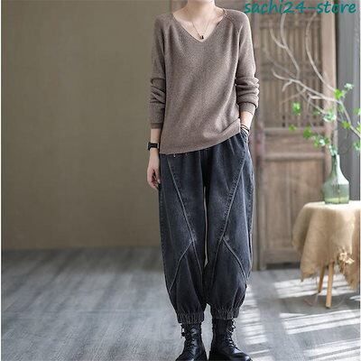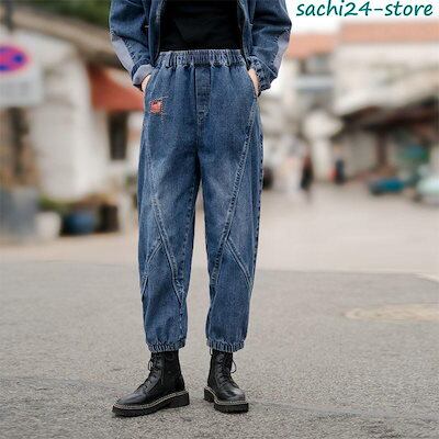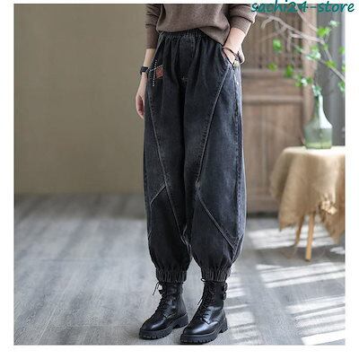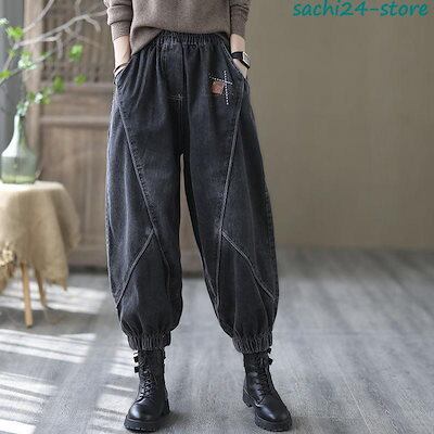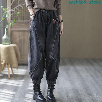 サルエルパンツ レディース デニムパンツ サーカスパンツ ウエストゴム 着痩せ アンクル丈 ガウチョ ワイドパンツ 体型カバー ゆったり カジュアル
