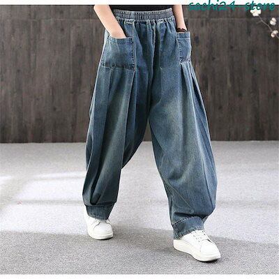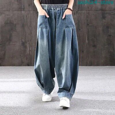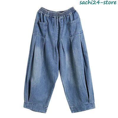 サルエルパンツ レディース デニムパンツ サーカスパンツ ウエストゴム ロングパンツ ガウチョ ワイドパンツ 体型カバー ゆったり カジュアル