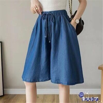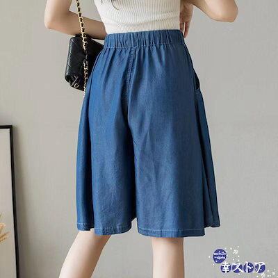 ! デニムショートパンツ ハーフパンツ レディース 短パン シンプル 散歩 薄手 着痩せ 定番 お洒落 柔らかい お出かけ 夏 旅行 膝丈