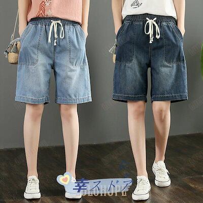デニム ショートパンツ レディース 短パン ヴィンテージ加工 ボトムス レディース Gパン カジュアル ハーフパンツ デニムパンツ 着痩せ 夏