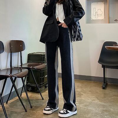2024春夏 新作 日韓 ハイウエスト デニムパンツ モップパンツ ワイドパンツ グラデーション ズボン 気質 百掛けスラックスパンツ 韓国ファッション スキニーパンツ 脚長効果! ひんやりボトムス