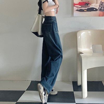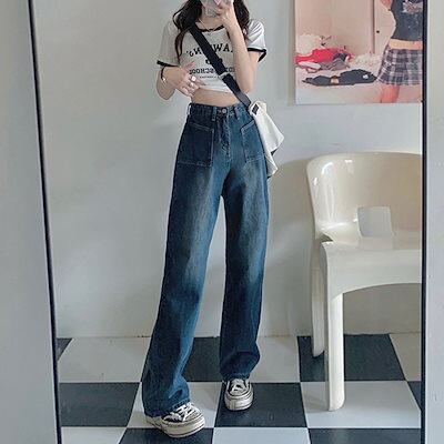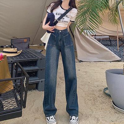 2024春夏 日韓 新作 ハイウエスト ゆったり デニムパンツ 百掛け 着痩せ 気質 モップパンツ ワイドパンツスラックスパンツ 韓国ファッション スキニーパンツ 脚長効果! ひんやりボトムス