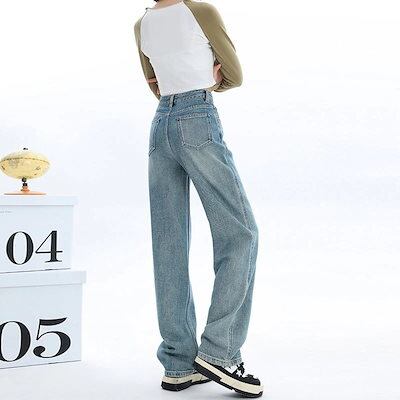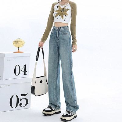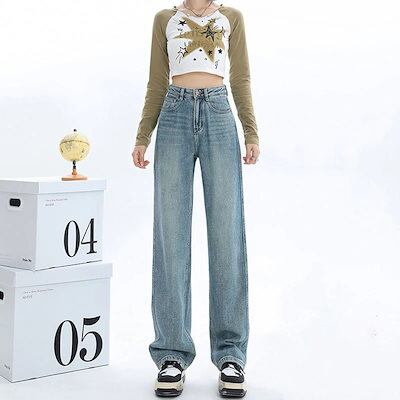 2024新作 韓国ファッション 流行り モップパンツ 細見え カジュアル ズボンファッション デザイン ジーンズ レディース ジーンズ レディース 脚長効果!スキニーパンツ ひんやりボトムス ワイドパ
