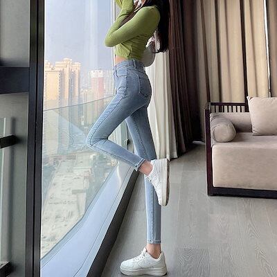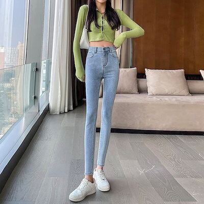 夏 ニュースタイル おしゃれ カジュアル タイトパンツ ジーンズ レディース ハイウエストデニム スキニーデニム デニムボトムス スキニーパンツひんやりボトムス ワイドパンツ デニムパンツ