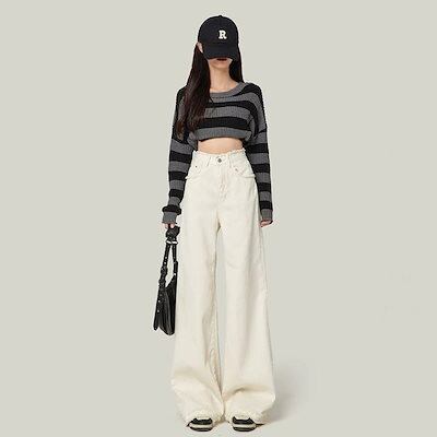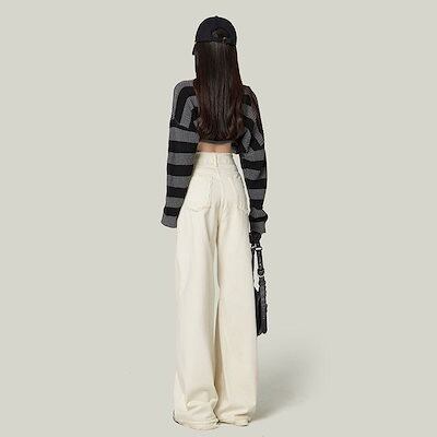 春秋新作 ガウチョパンツ ワイドパンツ ゆとりがある 韓国ファッション やせて見える ハイウエスト バリ ストレートパンツ ワイドパンツ レディース