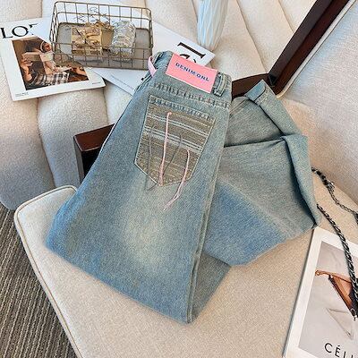 春秋新作 ガウチョパンツ ライトブルー ストレートシリンダ ジーパン ゆとりがある 韓国ファッション ハイウエスト ワイドパンツ レディース