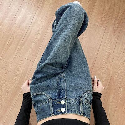 春秋新作 ガウチョパンツ アメリカ ストレートシリンダ ジーパン ハイウエスト やせて見える ゆとりがある ワイドパンツ レディース