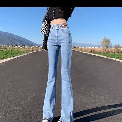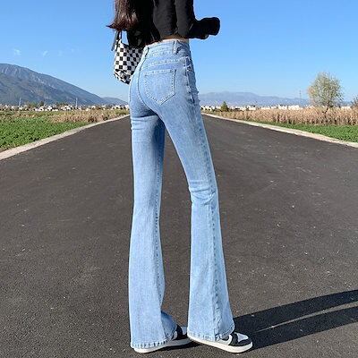デニムボトムス ジーンズレディース秋2024年新作ハイウエストフレアパンツ