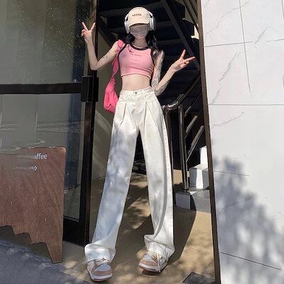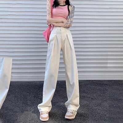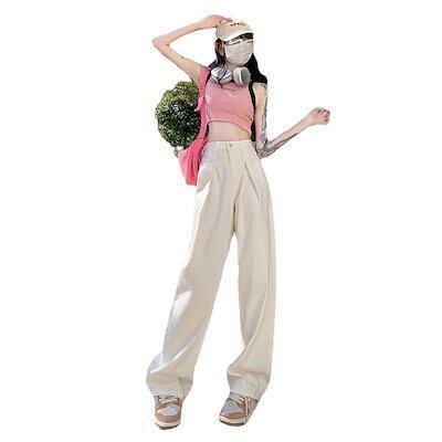 スラックスパンツレトロ ギャザー 高級感 ハイウェスト ドレープ感 モップパンツ ワイドパンツ ストレートパンツ ジーンズ レディース コーディネート ニューデザイン