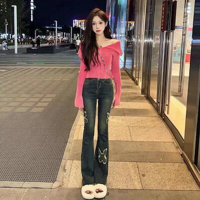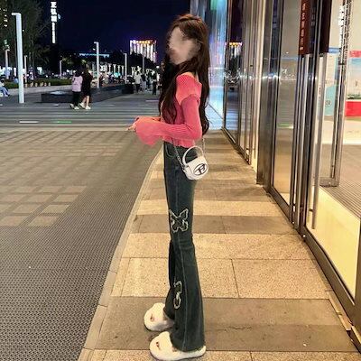 ファッション レディース 春新作ハイウエスト ロングパンツ着痩トレンドフレアスズボン