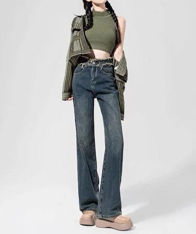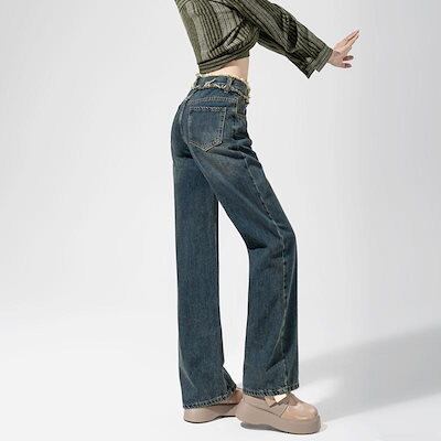 デニムパンツ 2025新作 流行り デニムパンツ ハイウエスト ワイドパンツ ジーンズ レディース レトロ ゆったり ズボン脚長効果 デニムパンツ