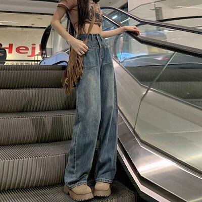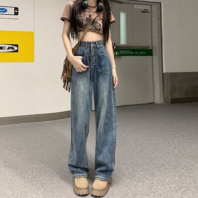 2025春夏新作 デニムパンツ 着痩せ 気質 ゆったり レトロ デニムパンツ モップパンツ ワイドパンツ脚長効果!スキニーパンツ ワイドパンツ スラックスパンツ デニムパンツ
