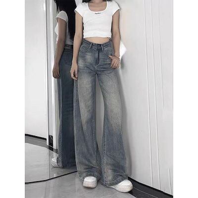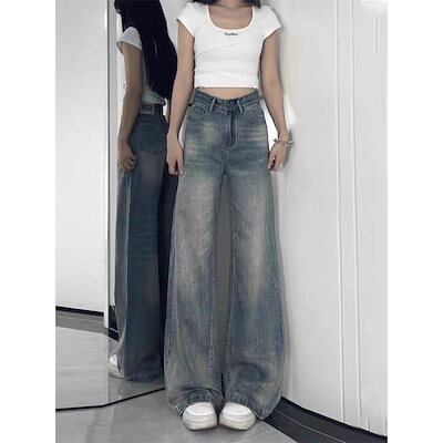 ジーンズ レトロ ジーンズ レディース 春秋 新作 ゆったり 薄手 ハイウエスト ストレート ワイドパンツ 床丈長ズボン ?国ファッション