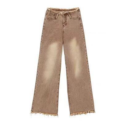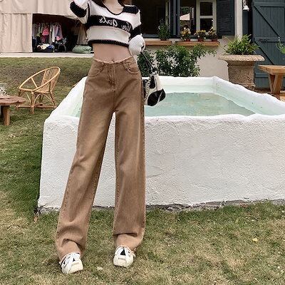 人気スラックスパンツ デニムパンツ アメリカンレトロなカレー色のバリストレートジーンズレディース冬の新作ハイウエストスリムワイドパンツ