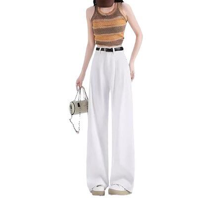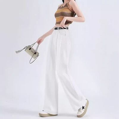 【3日以内に出荷】ニュースタイルホワイトワイドパンツジーンズ レディースプリーツルーズドレープパンツ