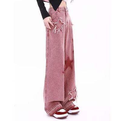 ワイドパンツ 刺繍入りジーンズ レディース 初春の新作 ゆったりワイドパンツ