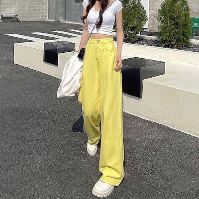 人気スラックスパンツ ゆったりストレートジーンズ レディース 2025 春新作 薄手ワイドパンツ