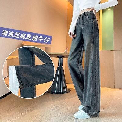 デニム ワイドレッグジーンズ レディース 2025 新作 ハイウエスト ナローストレートパンツ