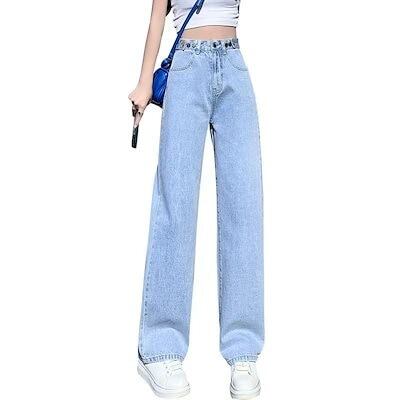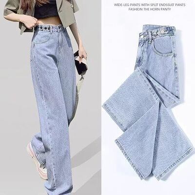 デニムパンツ ハイウエストワイド脚痩せ見えジーンズレディース夏2023新作ストレートゆったりドロップ感モップジーンズ