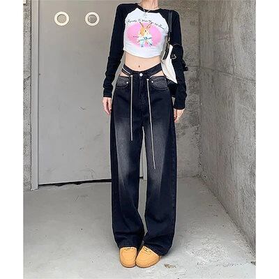 【3日以内出荷】脚長効果!デニムパンツ ワイドレッグジーンズ レディース 小さい 春秋新作 ハイウエスト デザインセンス 薄い 百掛け 床丈パンツ 韓国ファッション